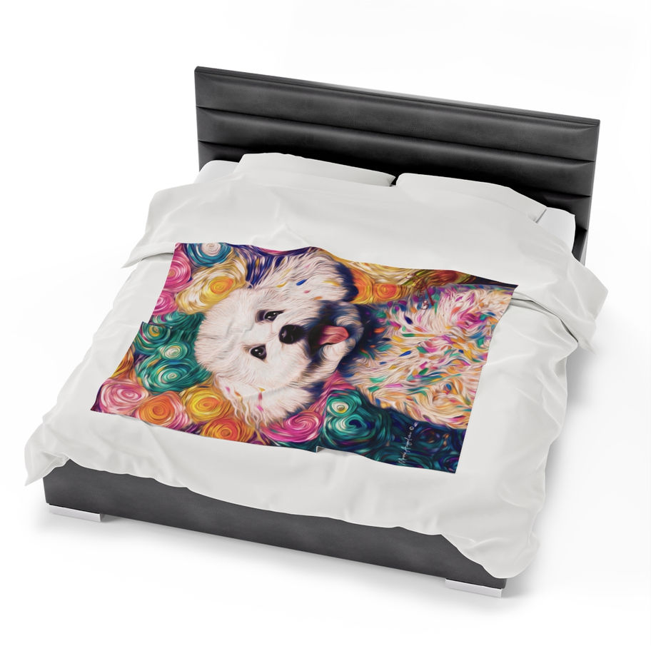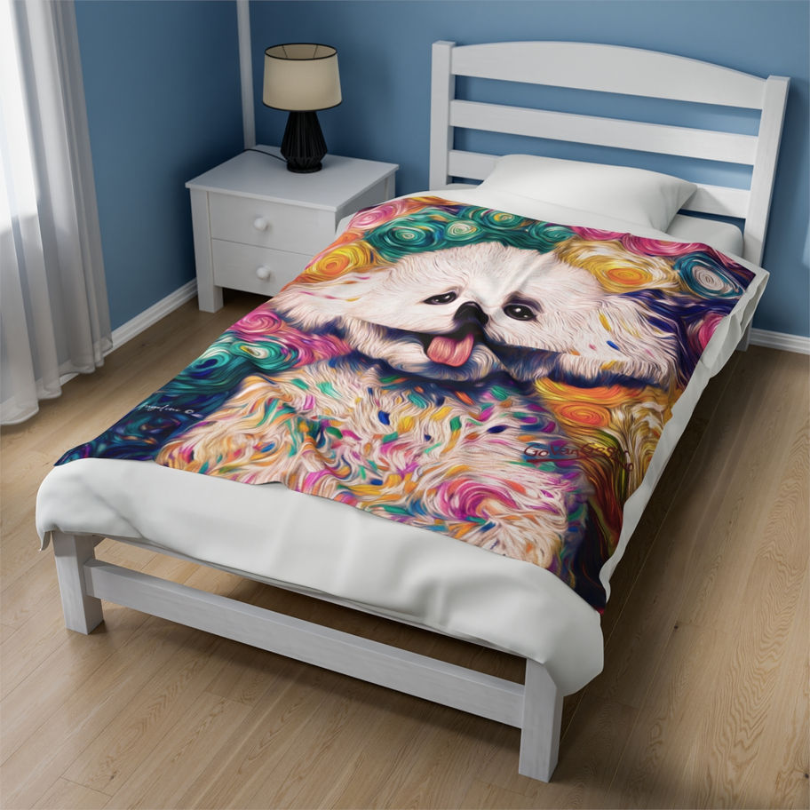 Van Gogh VIBE BICHON FRIESE Velveteen Plush Blanket Throw SOFA CoverUp Mink Soft