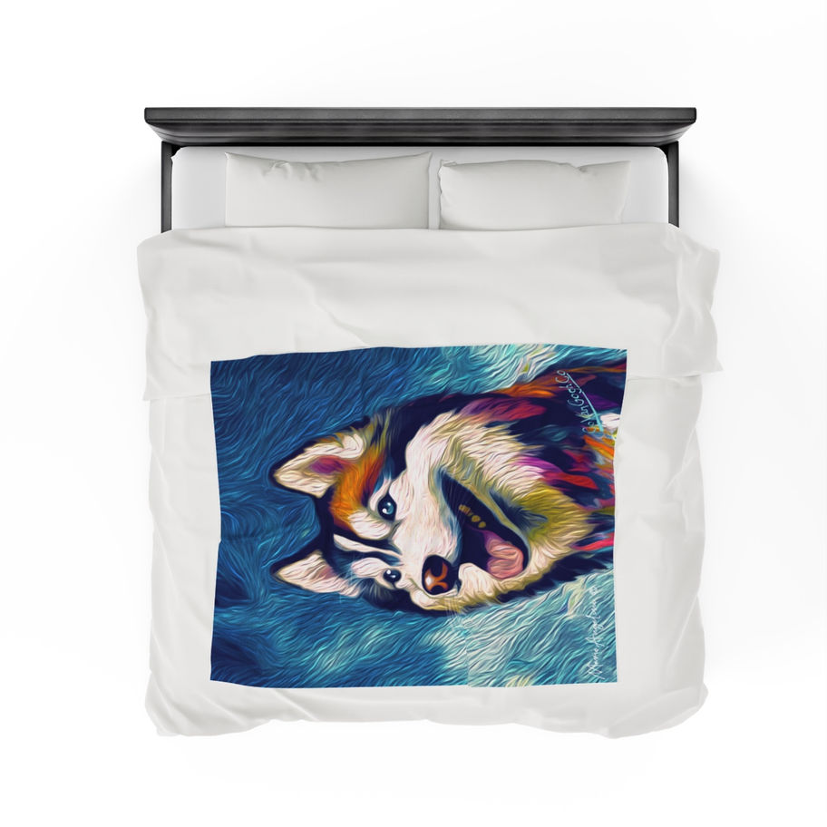 VanGogh VIBE SIBERIAN HUSKY Velveteen Plush Blanket Throw SOFA CoverUp Mink Soft